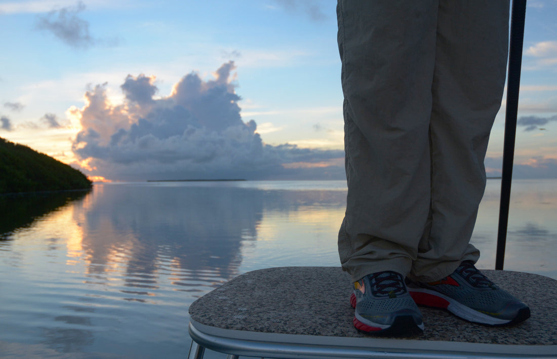 Why are we doing this? This singluar thought runs through the mind before it has had time to comprehend what is about to happen. A bit of crappy coffee helps to rationalize the few hours of sleep and quiet the thoughts of crawling right back into bed. It's time to get going. Stepping out of the car, the only sound in the stillness of the predawn humidity is the even putter of an engine. The running lights of the skiff balance the moonlight as we slowly make our way towards the boat. It's Sunday morning, after the International Fly Tackle Dealer show and I have come to the keys in search of a little adventure for a few days. A loud “Morning” bellows out, breaking the silence and is followed up by “load up.” We drop our gear into the boat, then we quietly slip away from the dock into the darkness of Florida Bay.
