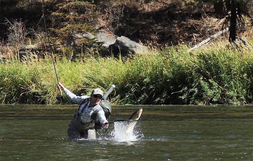 Nets with long handles can be worn in the belt and rotated forward when the fish is close. The scoop can then happen in one quickdraw motion when the moment is just right. Will Bales photo.
