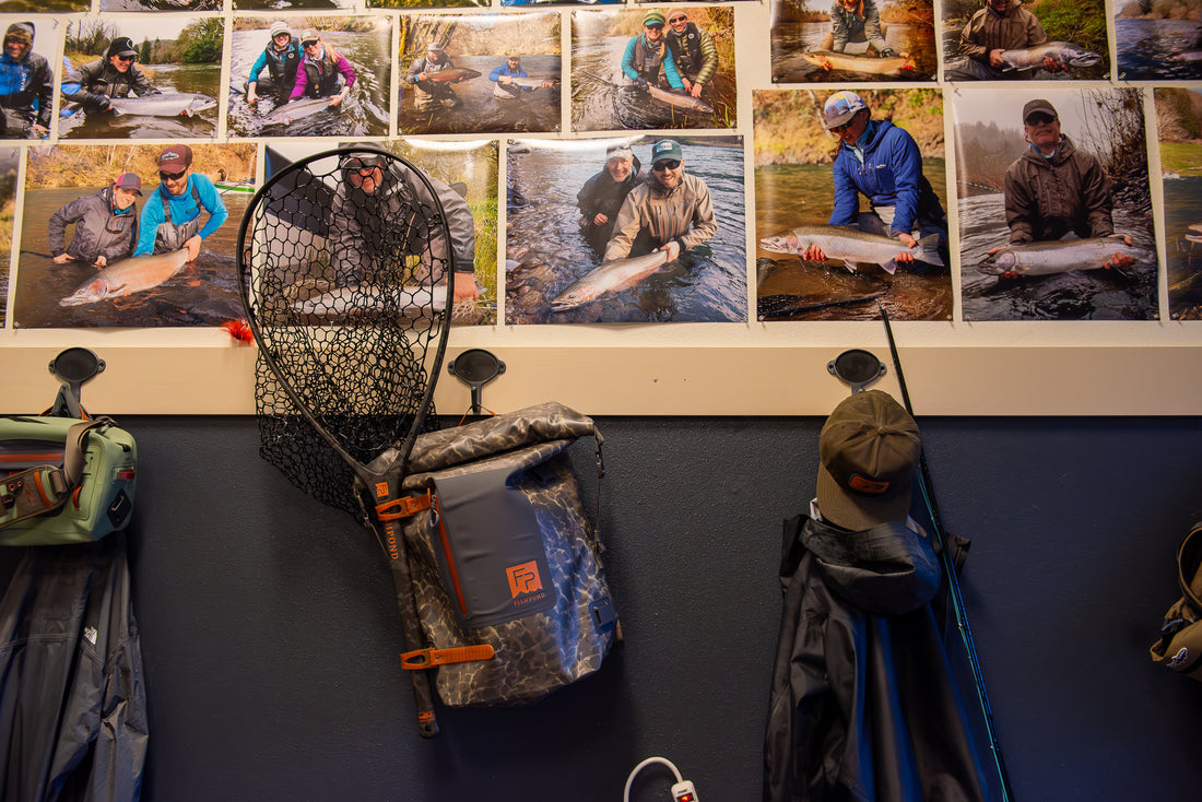 Perched on a hill overlooking the bay, Kate and Justin Crump’s home stood silhouetted against the gray horizon—a beacon of sorts, part steelhead sanctuary, part refuge for tormented anglers. The house hums with purpose, built to cater to the relentless pursuit of these fish that refuse to give up their secrets willingly. Inside, every detail speaks to the persistence of a steelhead guide: gear hung neatly to dry, lines and leaders spooled, packs and landing nets organized—all in service of an ever-present state of readiness that the rivers, and these fish, demand.