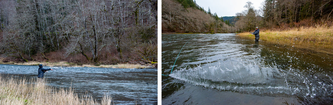 The sun dipped low behind the dark gray lid that capped the forest. Chris worked a run adjacent to a towering concrete bridge, built to carry precious lumber from the coast to inland mills and distribution centers. Sofia and I were engaged in a heated conversation, reviewing my spey casting technique.