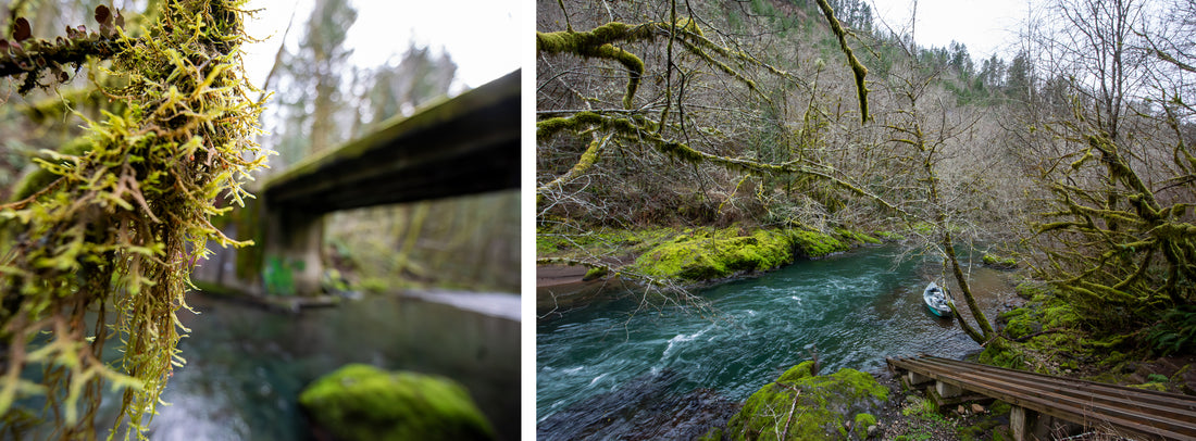 My friend Chris, a reformed corporate carpet-walker and the kind of guy who’d keep quiet about how many cigarettes a man can smoke while swinging for steel, was my partner for this year’s pilgrimage. We flew out of Denver one early winter morning, leaving dry air and bright skies in our wake. By the time we landed in Portland, the rain was waiting to greet us—a steady drizzle that would accompany us for most of the rest of the trip. Driving west, the Willamette Valley unfolded in front of us in soft, wet hues of pastel green. Expansive swaths of farmland faded into low, forested mountains, and the dark embrace of the Wilson River Highway hove into view. Buffeted by the blues stylings of Taj Mahal and Keb’ Mo’, our eyes scanned the forest as we traversed the eastern slope of the Oregon Coast Range. The air is thick with mist here, and moss clings to every surface—tree trunks, guardrails, even the road itself—while rain drips from the towering trees like a metronome. Soon, views of the emerald waters of the Wilson River began to flash through the thicket of cascara, Pacific ninebark, and Douglas hawthorn that choked the roadside. The road twisted, turned, and hopped back and forth across the river before depositing us in the coastal lowlands of Tillamook County where the rain felt heavier and the gray settled deeper.